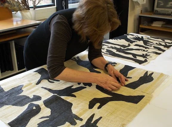 Having fun creating “shadow puppets” / Screenprinting images on fabric / Embellishing and detailing printed images